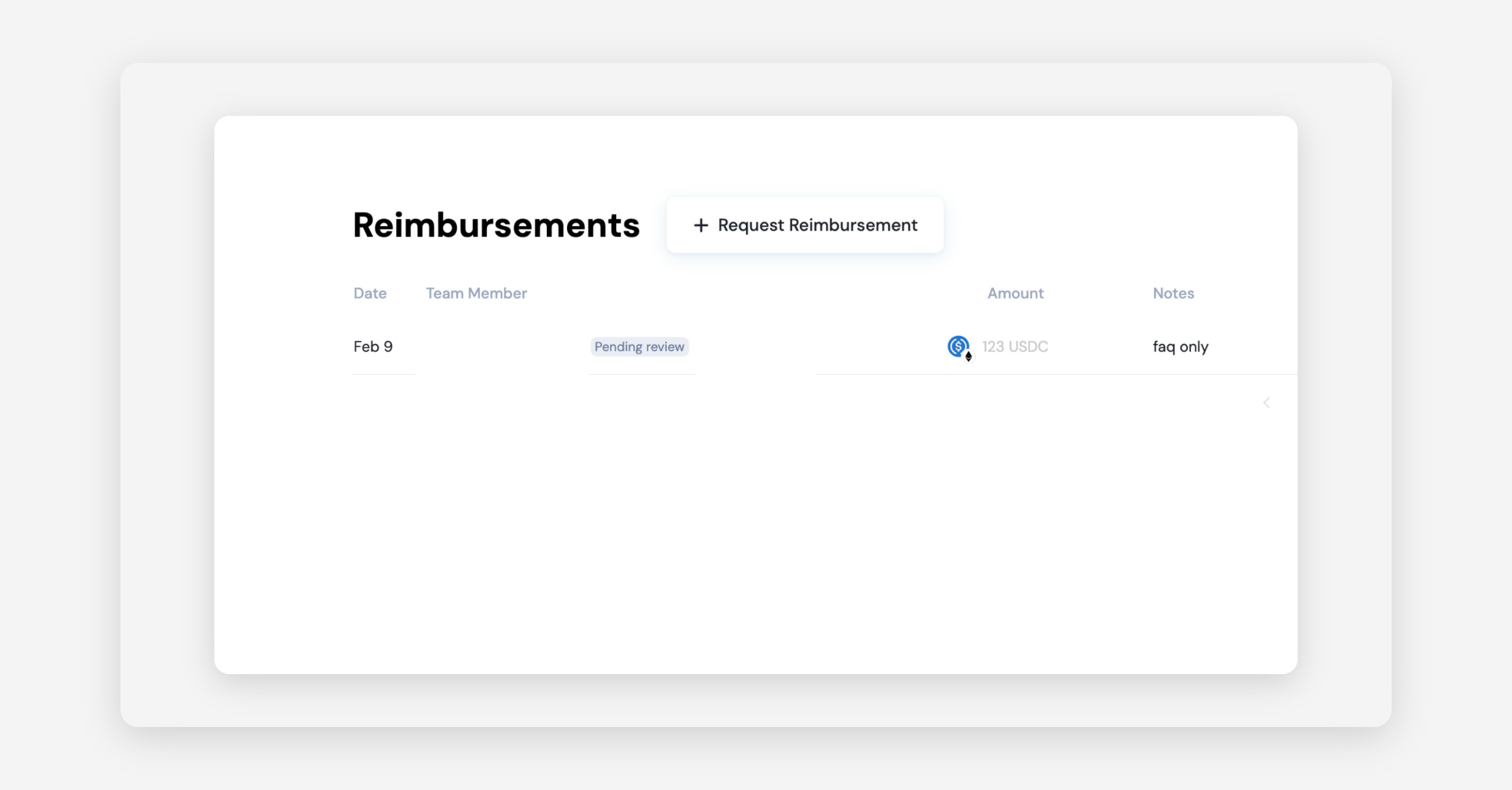 Reimbursements — Team members and Admins can set their own payment details and request repayment for out-of-pocket business expenses directly in OneSafe